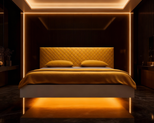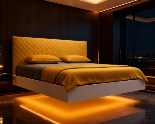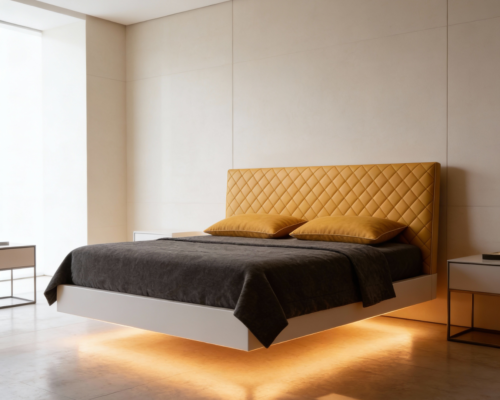 Lebdeča postelja (floating bed) je ena tistih rešitev, ki v spalnici takoj ustvari “wow” učinek. Videti je, kot da postelja lahkotno lebdi nad tlemi, brez vidnih nog. Prostor deluje bolj zračen, moderen in minimalističen.